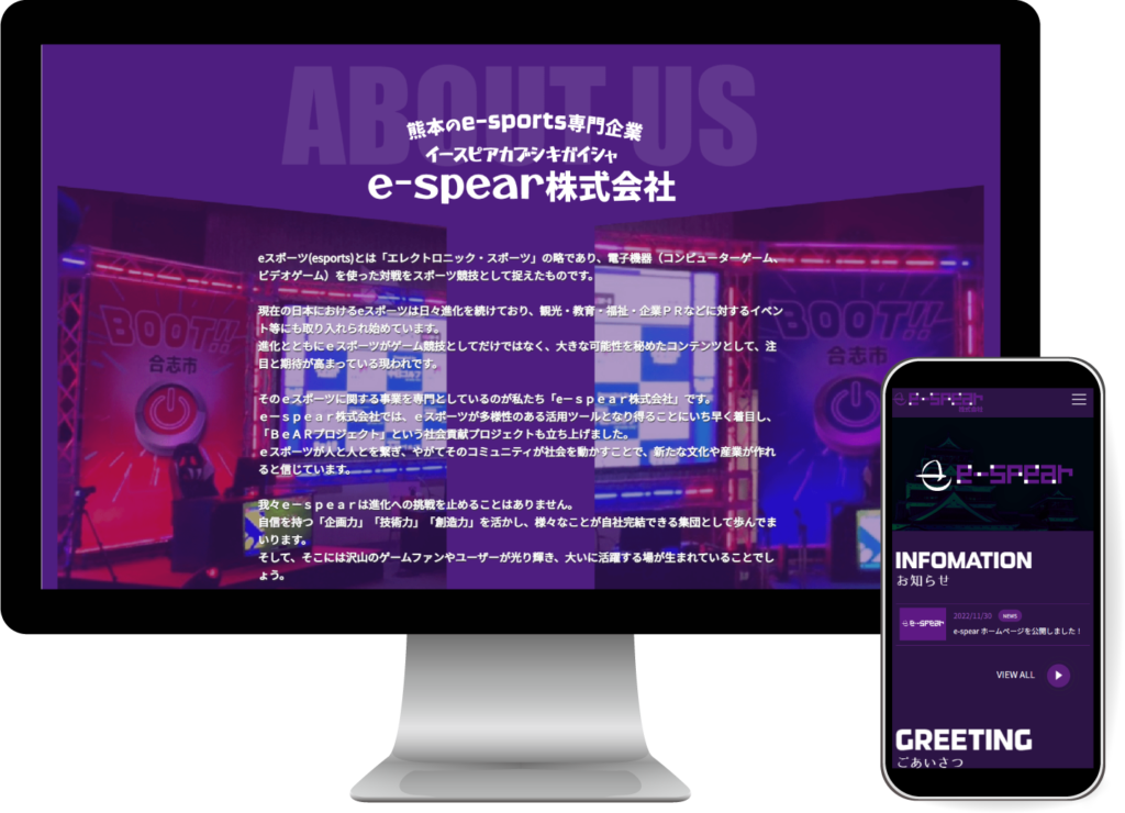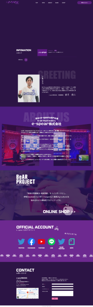 eスポーツ専門企業のe-spear株式会社様のホームページリニューアル制作を担当させて頂きました。