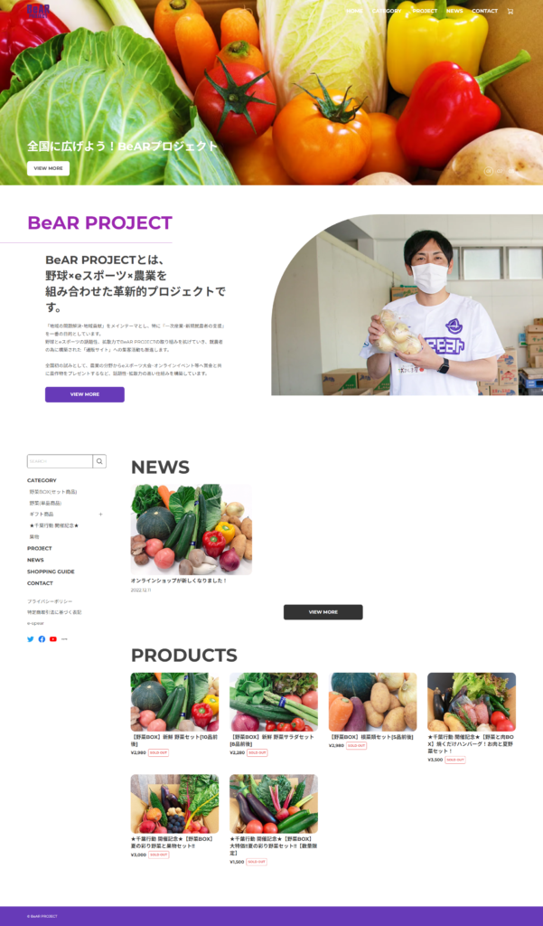 野菜ボックスを販売しているため、野菜のカラフルな画像をメインに配置しています。
