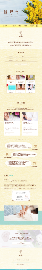 Hand of healing 神野々 様 のホームページ制作を担当させて頂きました。